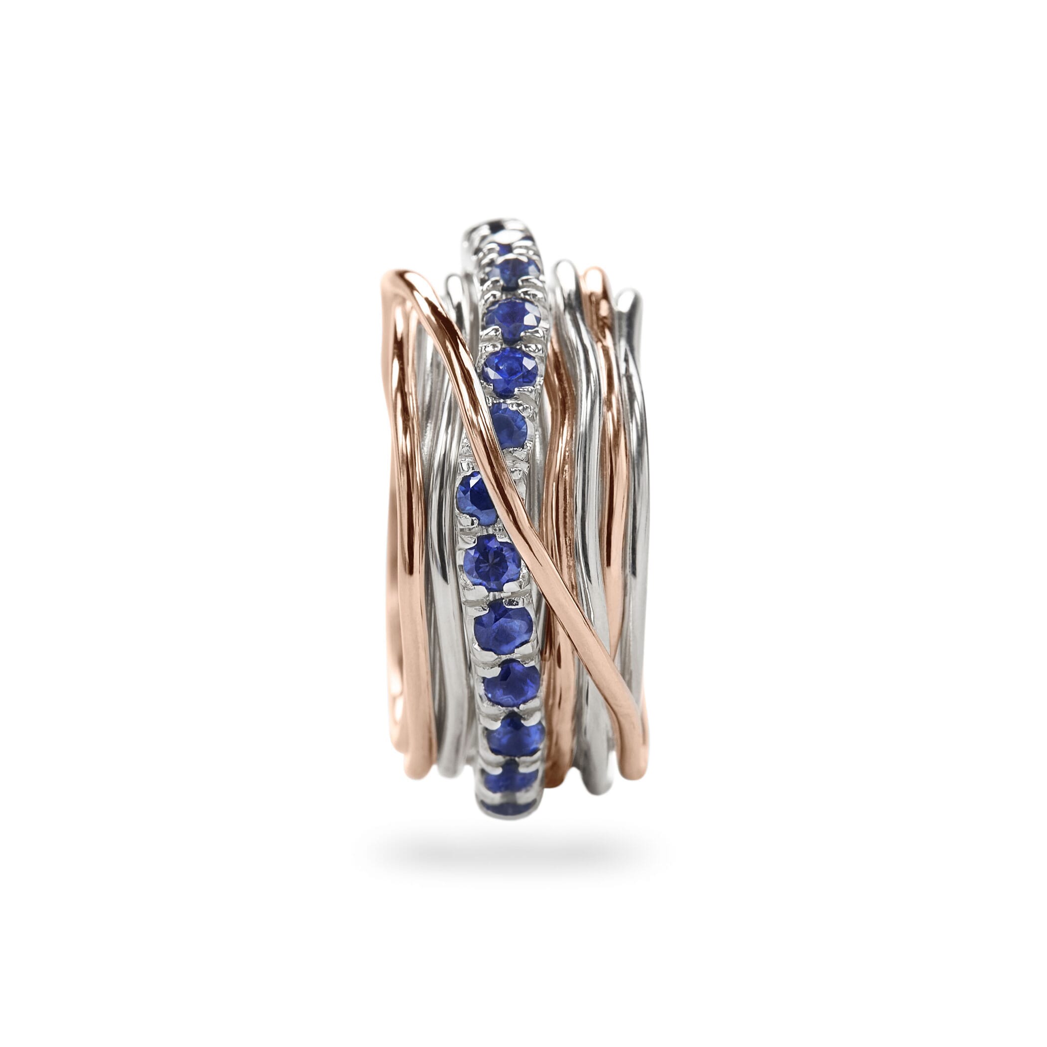 Anello Filodellavita Prezioso Collection 13 Fili Oro Rosa 9kt, Argento .950 al Palladio e 15 Za"ri Blu 0.99 ct