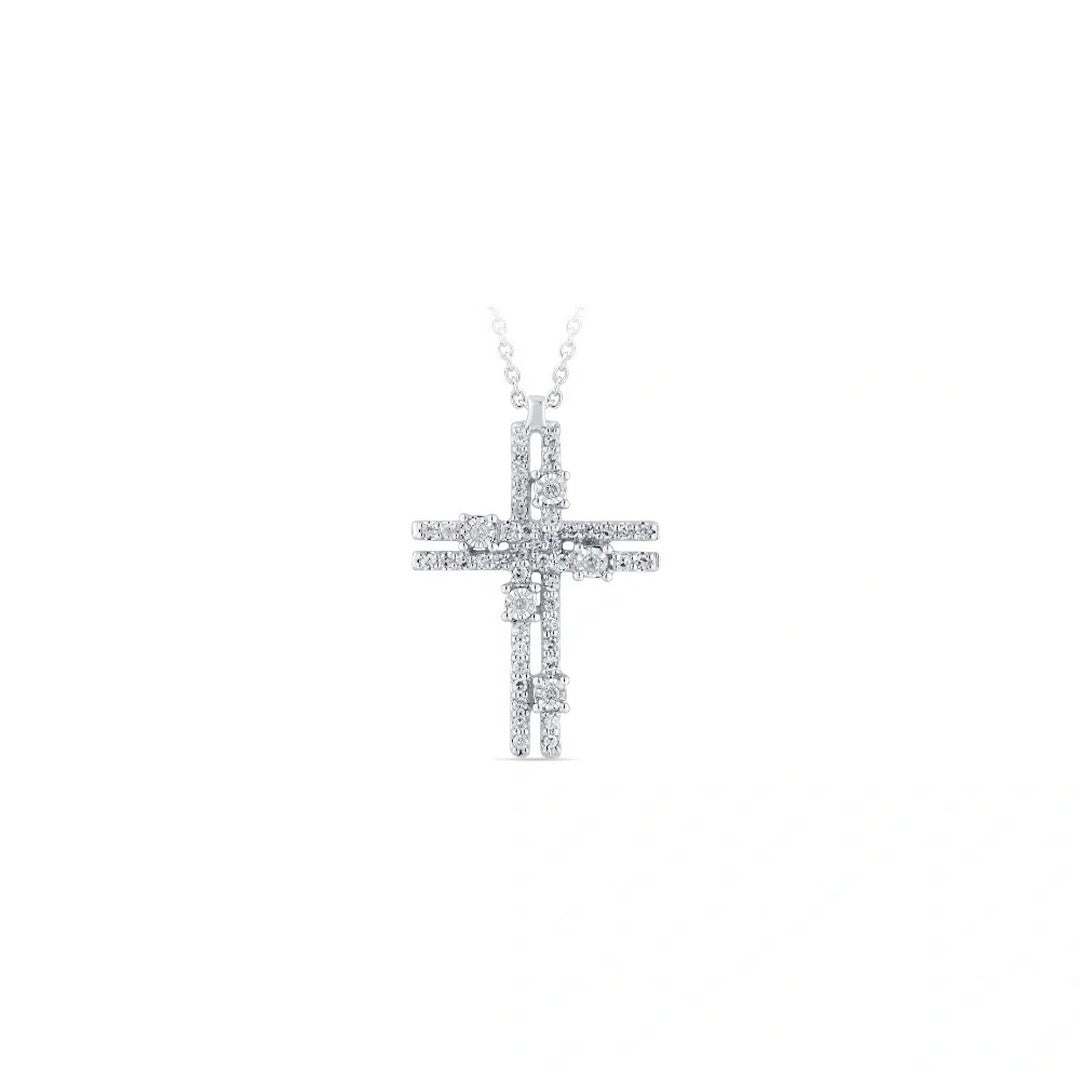 Collierino Via Lattea a croce con diamanti: un gioiello elegante e luminoso, perfetto per aggiungere un tocco di raffinatezza e stile a ogni occasione.