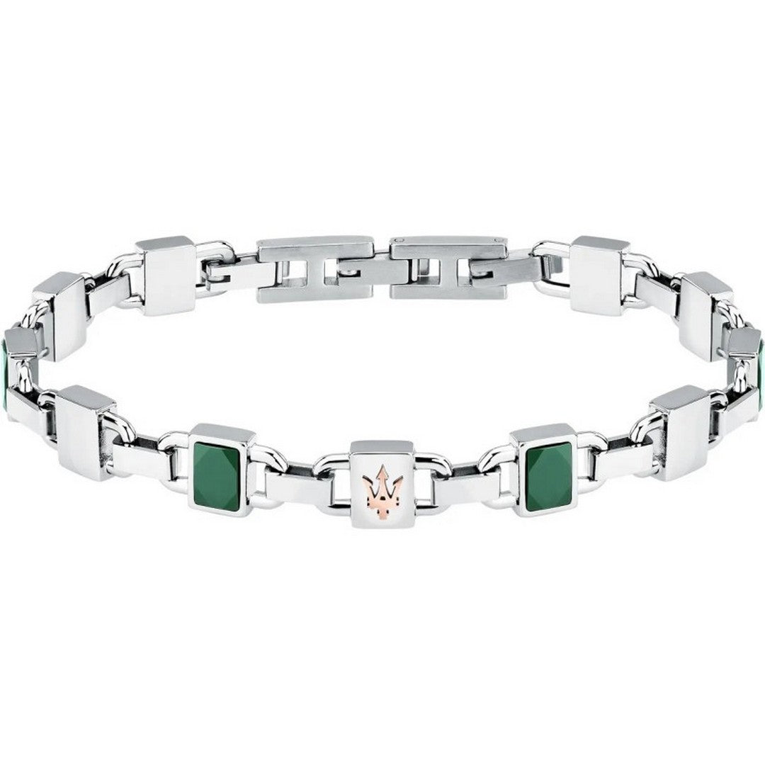 Gioiello da Uomo MASERATI della collezione Ceramic realizzato in acciaio anallergico - Il bracciale è valorizzato con inserti in ceramica verde ed impreziosito al centro dal caratteristico logo a tridente del brand in PVD rose gold - Lunghezza regolabile da 19 a 22 cm