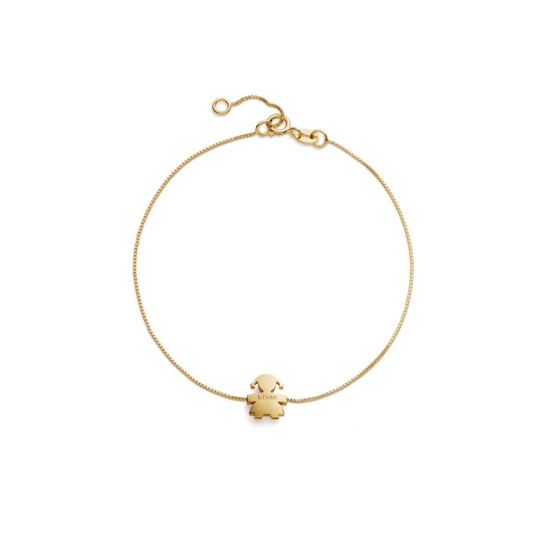 Bracciale sagoma bimba in oro giallo 18kt con catena.