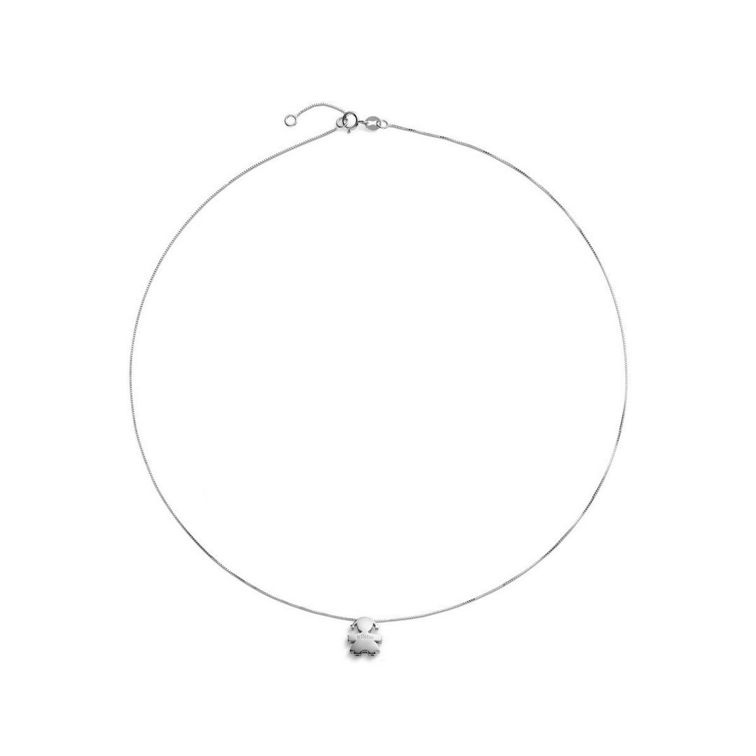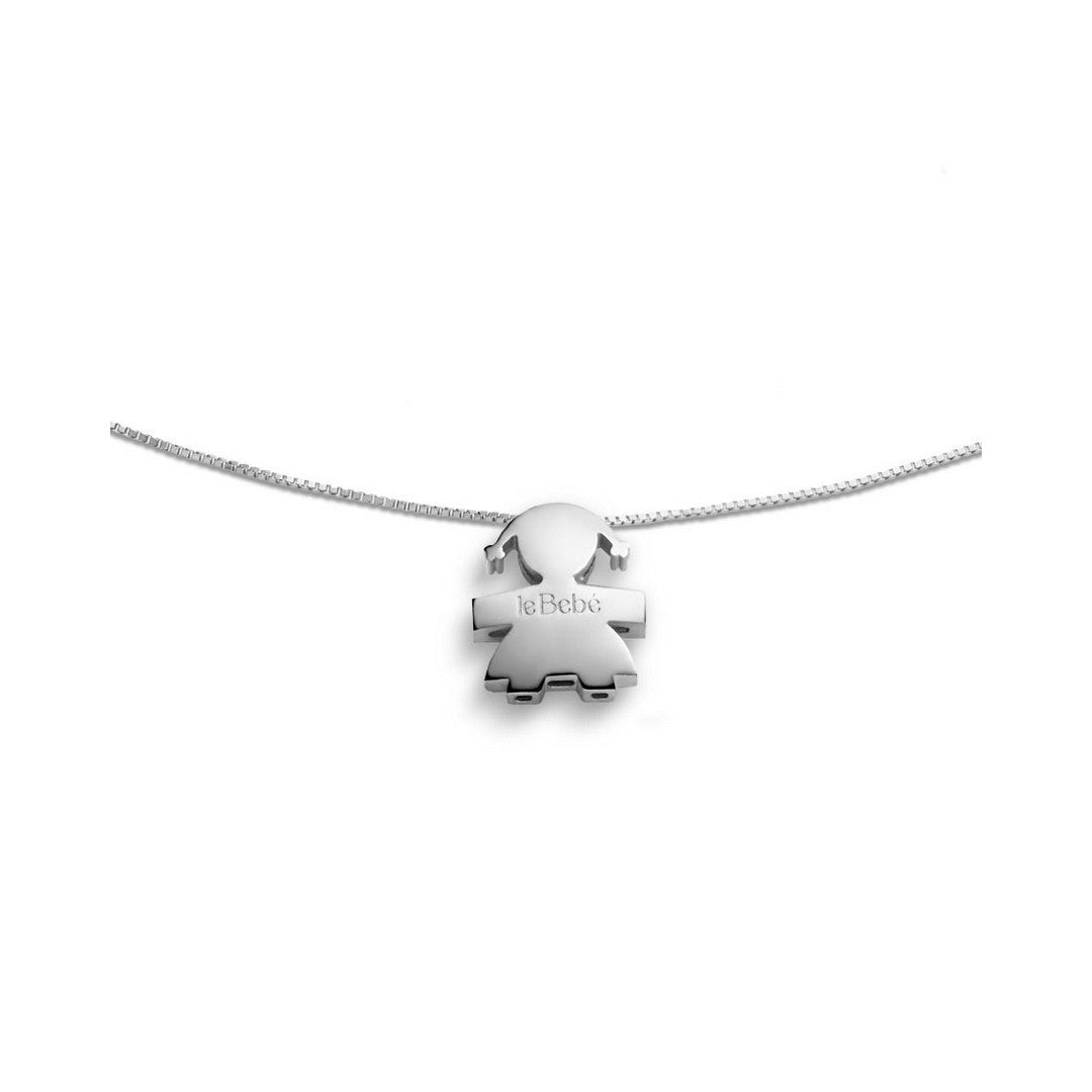 Ciondolo con catena sagoma bimba in oro bianco 18kt.