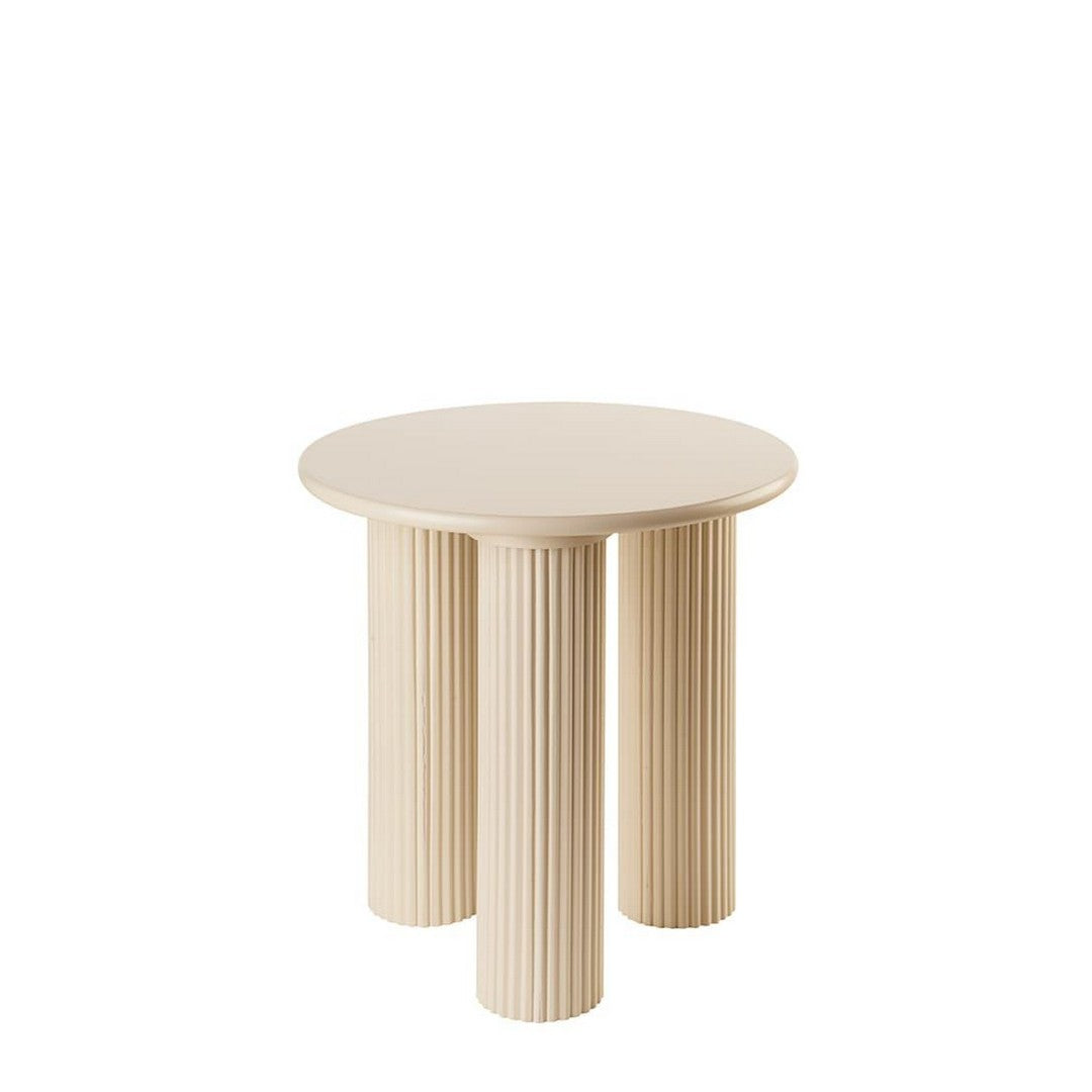 Tavolino tondo alto con piano levigato e gambe dall'effetto cannettato. Per gli amanti del design moderno con ispirazioni che rievocano l'arte classica. Perfetto da abbinare al tavolino tondo basso coordinato dell'ispirazione Neo Classic per un living dalle linee armoniose ed equilibrate.