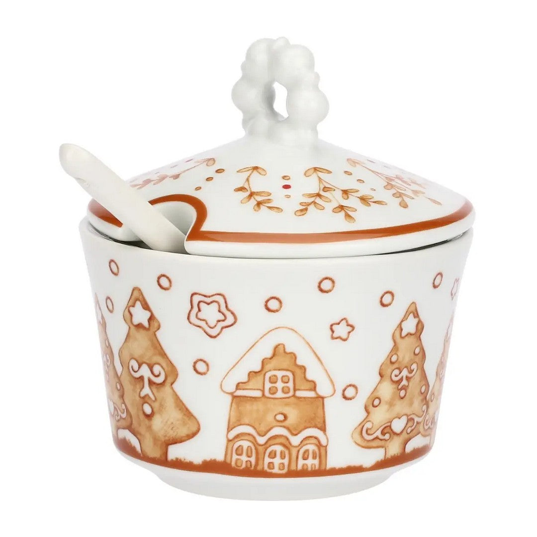 Delicata e ricca di charme, la zuccheriera con cucchiaino in porcellana della linea Thunland aggiunge un tocco di dolcezza alla tua tavola delle feste. Perfetta per accompagnare caffè e tisane con stile, è anche un’idea regalo raffinata per chi ama curare ogni dettaglio con eleganza e spirito natalizio!