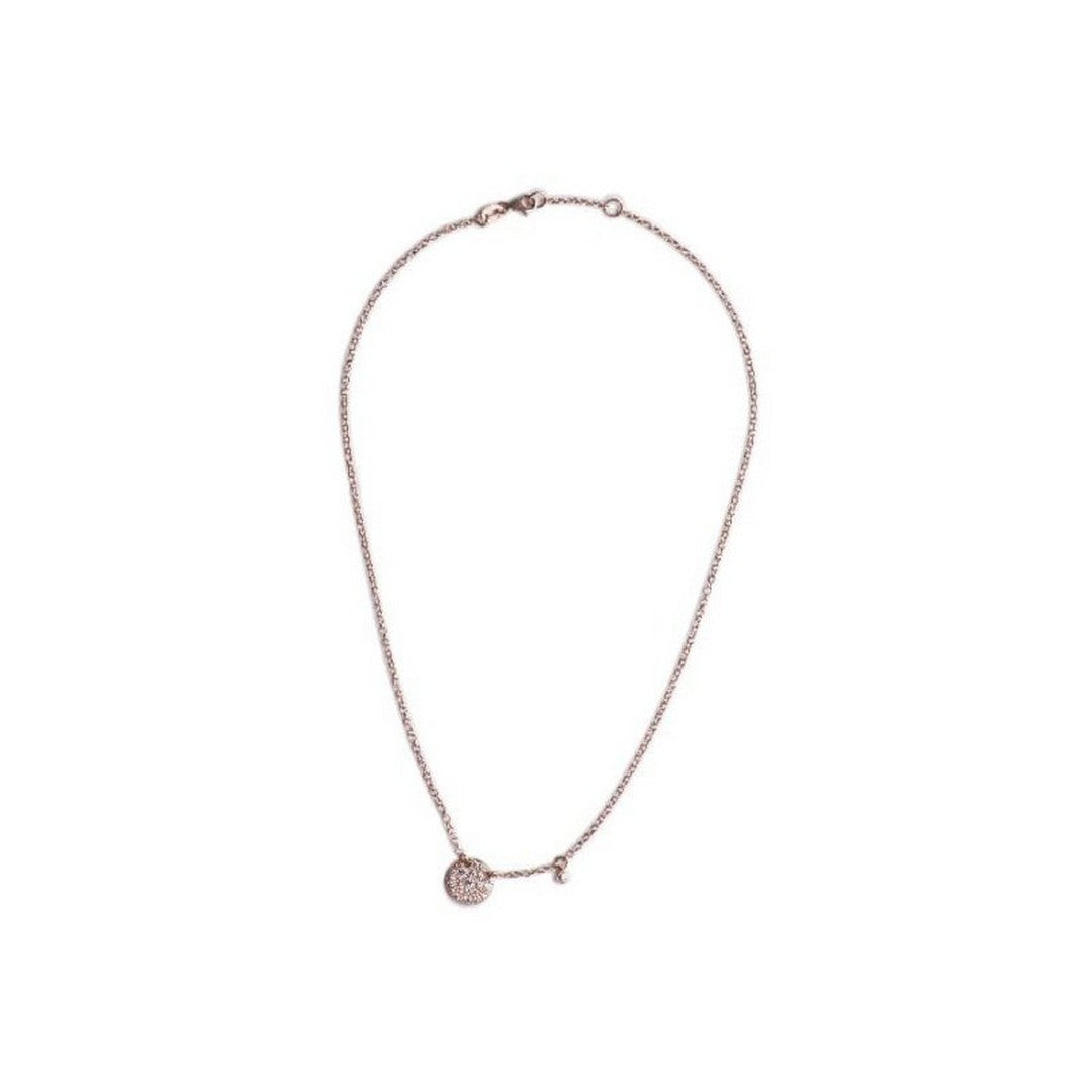 Collier Rolò avec petit pendentif rond pavé blanc en argent rosé.