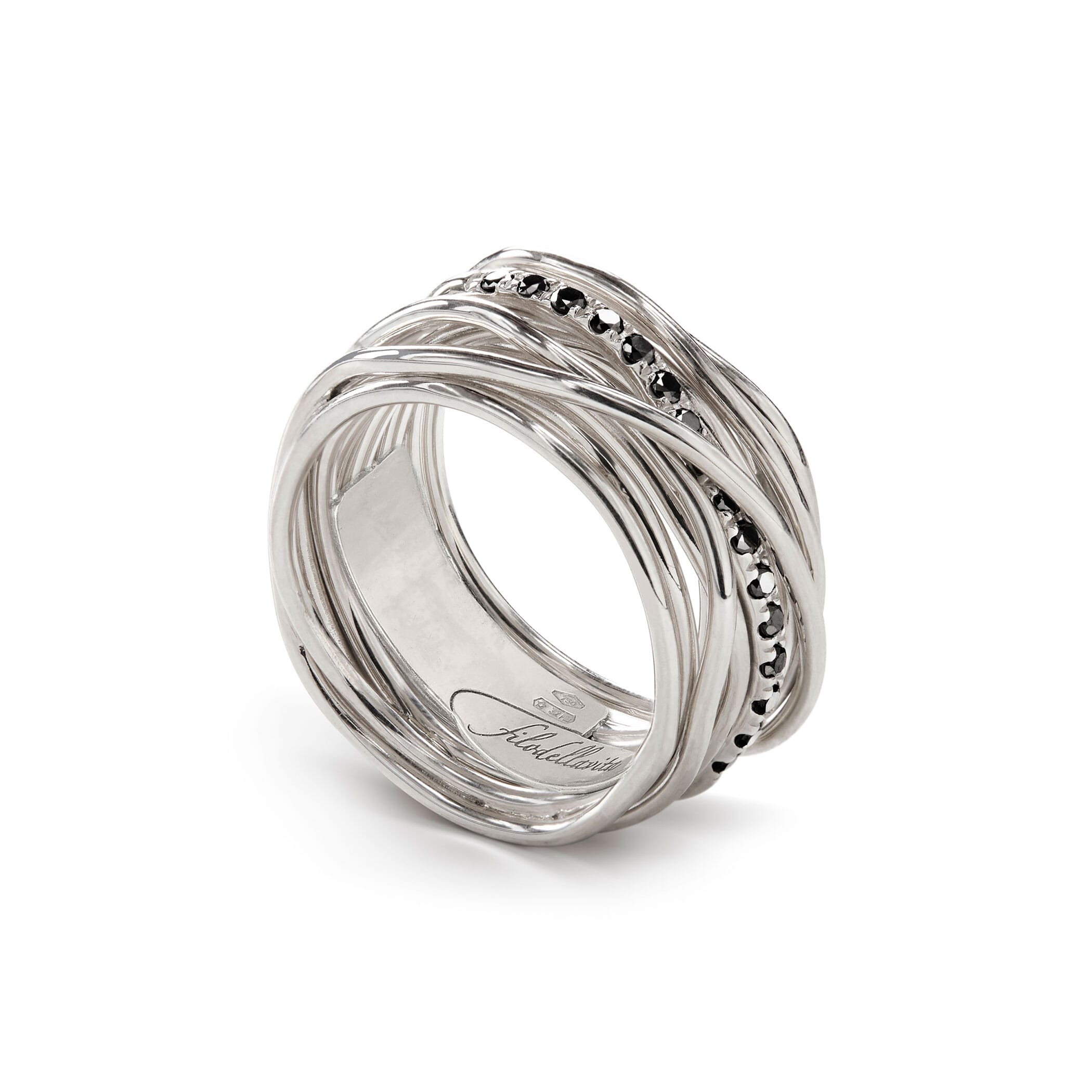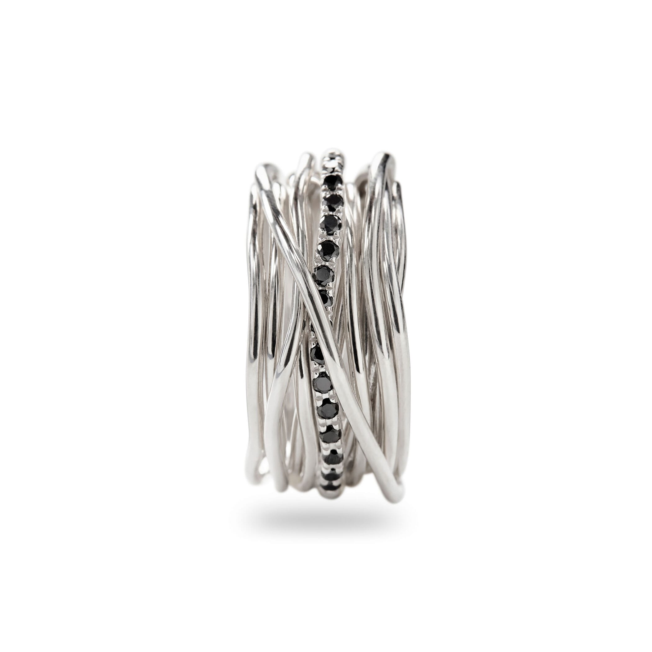 Anello Filodellavita Classic Collection, 13 Fili in Argento .925 e 16 Diamanti Black 0.21 ct