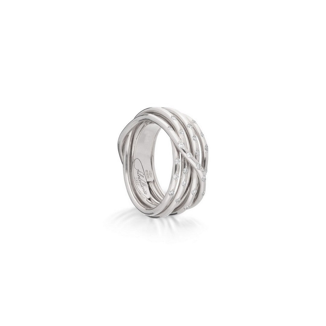 Anello Filodellavita Leda Collection, 7 Fili in Oro Bianco 18kt e 23 Diamanti Bianchi (Tot. 0.28 ct)