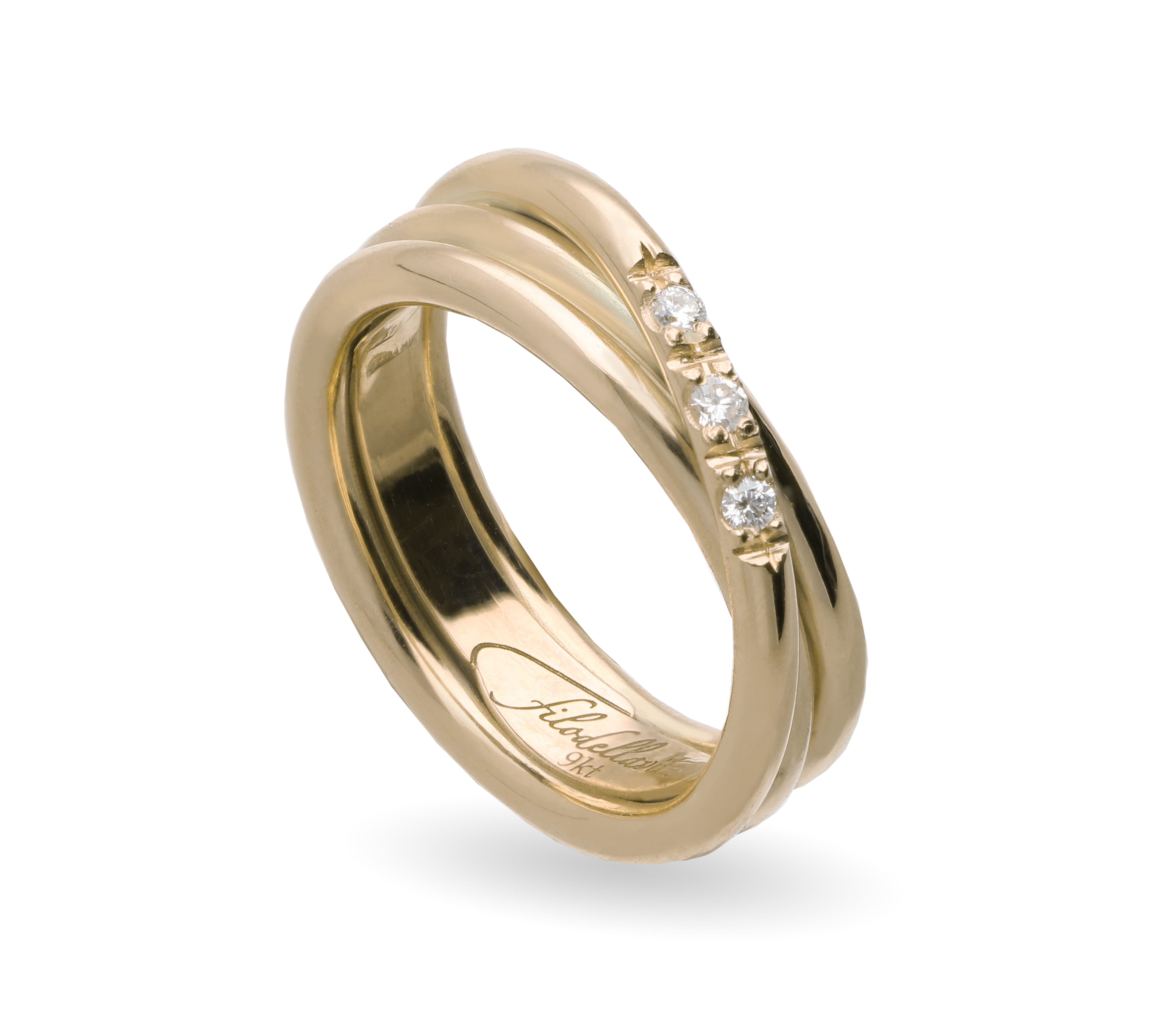 Anello Filodellavita Prezioso Collection, 3 Fili in Oro Giallo 9kt e 3 Diamanti Bianchi 0.08 ct