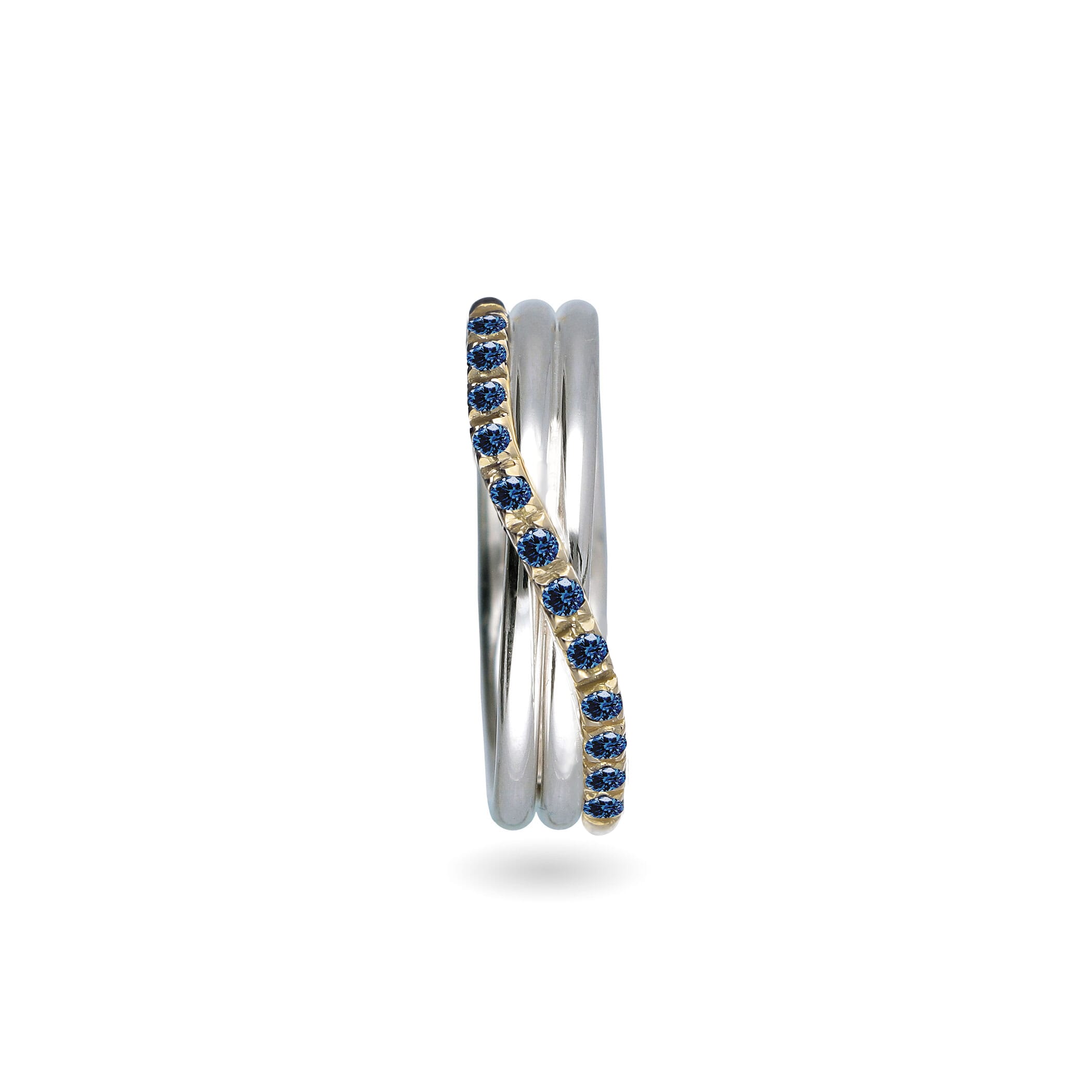 Anello Filodellavita Prezioso Collection, 3 Fili in Oro Giallo 9kt, Argento .950 al Palladio 950 e 12 Za"ri Blu 0.21 ct tot.