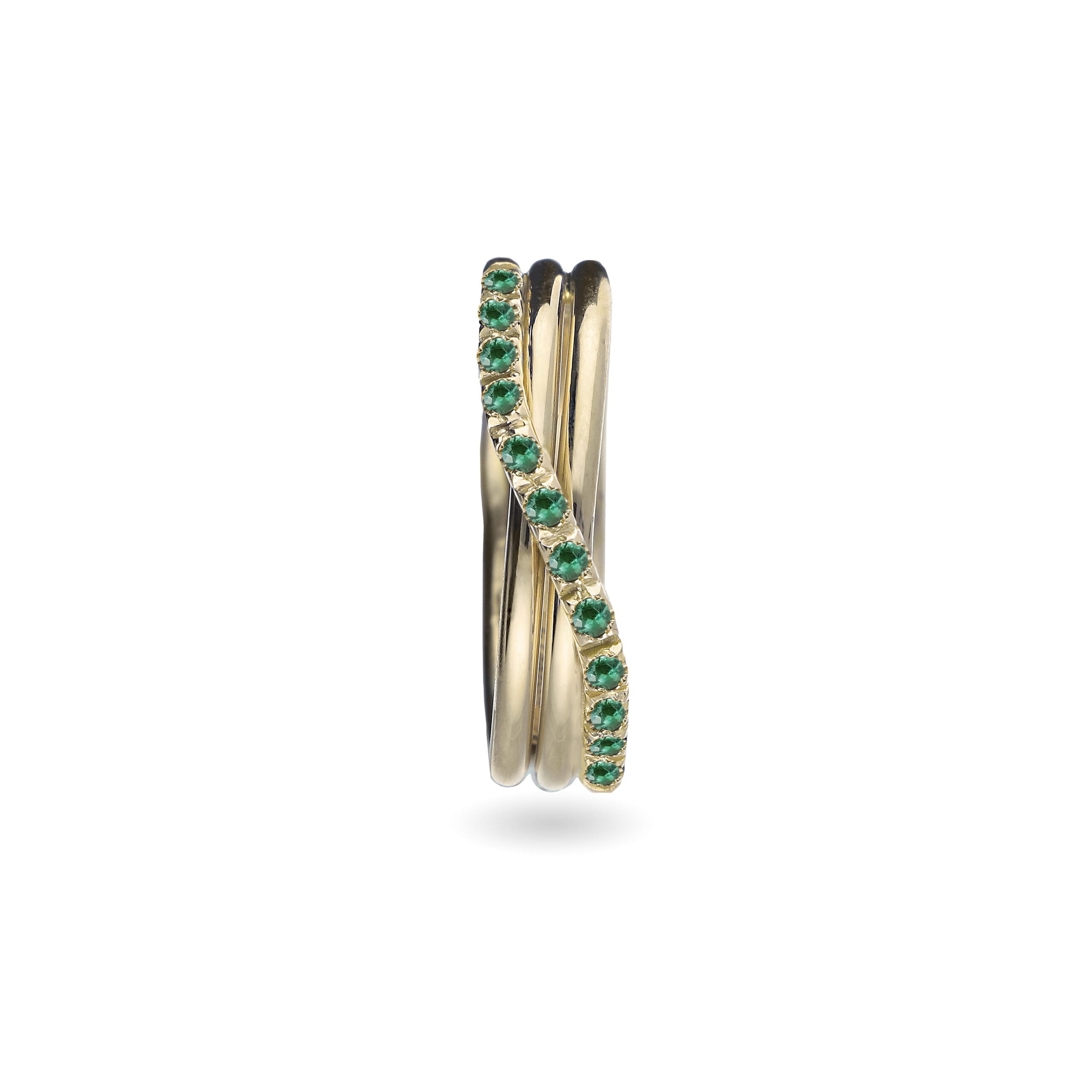 Anello Filodellavita Prezioso Collection, 3 Fili in Oro Giallo 9kt con 12 Smeraldi 0.20 ct tot.