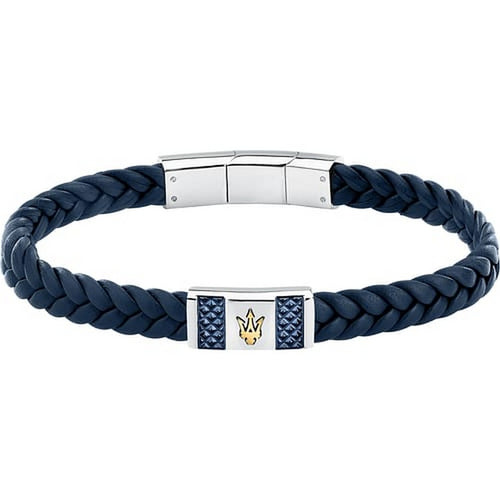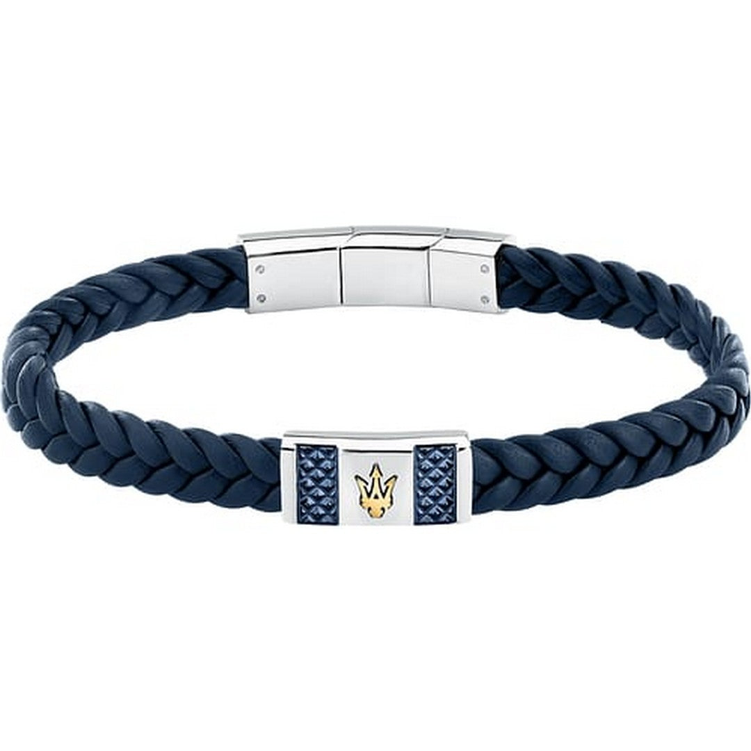 BRACCIALE MASERATI RECYCLED LEATHER - JM4249IK03 - Genere : Uomo, Misura: 19|1, Colore: Silver, Blu, Materiale: Acciaio, Pelle naturale, Peso: 18,580 gr, Certificato di autenticità: Sì, Confezione: Originale Maserati