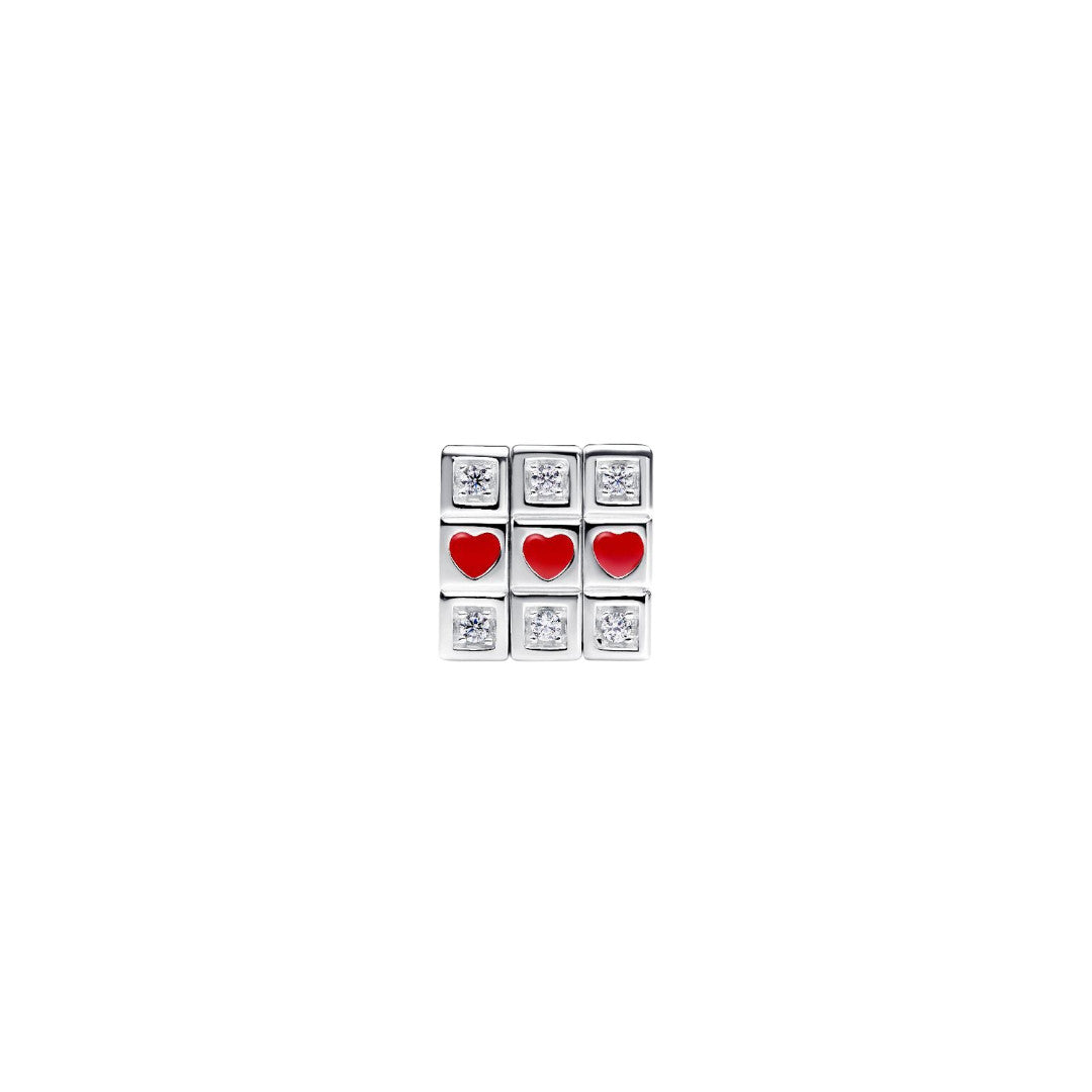 Giocattolo a forma di Cubo in Argento Sterling 925 con zirconia cubica bianca e smalto rosso