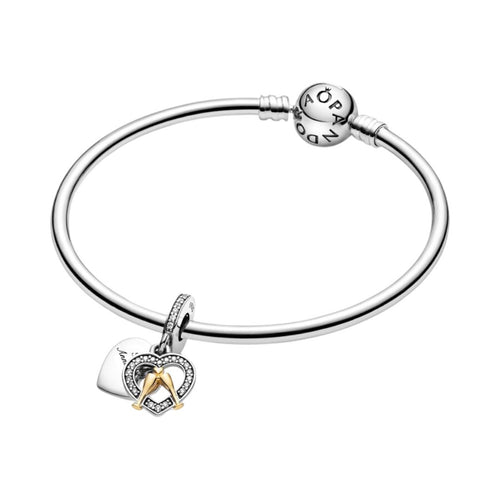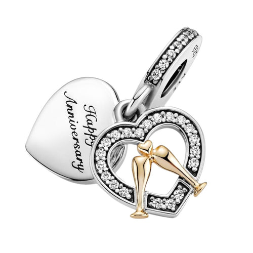 Pandora Pendente Buon Anniversario, Argento Sterling 925, Oro 14k, 41 zirconia cubica incolore taglio brillante incastonate a granette.