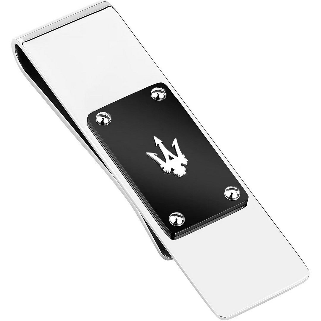 Gioiello da Uomo MASERATI della collezione ICONIC realizzato in acciaio inox 316L - Il fermasoldi, caratterizzato da una lucente finitura lucida, è valorizzato da un inserto centrale in acciaio PVD black con quattro viti ai lati ed impreziosito al centro dal caratteristico logo a tridente del brand - Dimensione Fermasoldi: 1,7 x 6,0 cm - Garanzia Internazionale: 24 Mesi