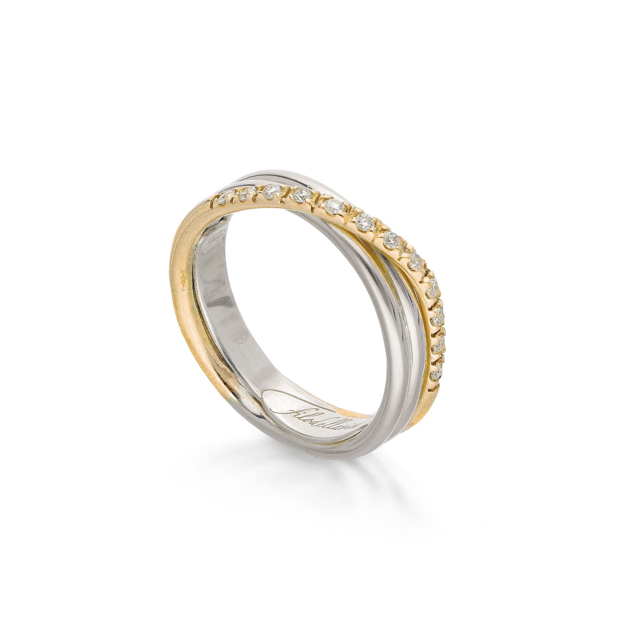 Anello Filodellavita Classic Collection, 3 Fili in Argento .925 e Oro Giallo 9kt e 12 Diamanti Bianchi 0.17 ct