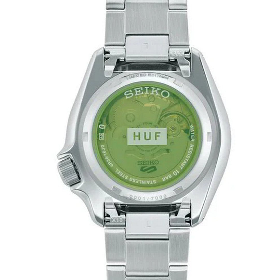 Questo modello esclusivo richiama un classico Seiko 5 Sports degli anni '60, reinterpretato con una palette audace di verde, blu e rosso, creata appositamente da HUF.