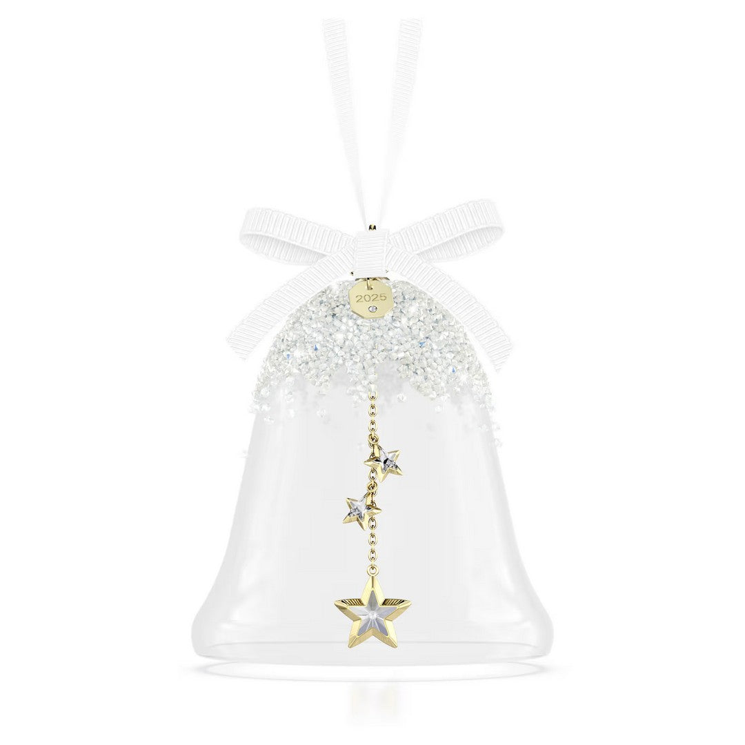 Celebra la stazione delle feste con la Annual Edition Decorazione Campanella Swarovski per il 2025. L’immacolato design in vetro è ricoperto da circa 1.300 cristalli, mentre l’interno contiene un batacchio a forma di stella realizzato con 109 sfaccettature e una finitura in metallo in tonalità oro champagne. La creazione è sospesa ad un nastro in gros-grain bianco con l’incisione 2025 sulla targhetta. Un gioioso mix di delicata bellezza e suono armonioso, perfetto per impreziosire qualsiasi arredamento festivo. Oggetto decorativo. Non è un giocattolo. Non adatto a bambini di età inferiore ai 15 anni.