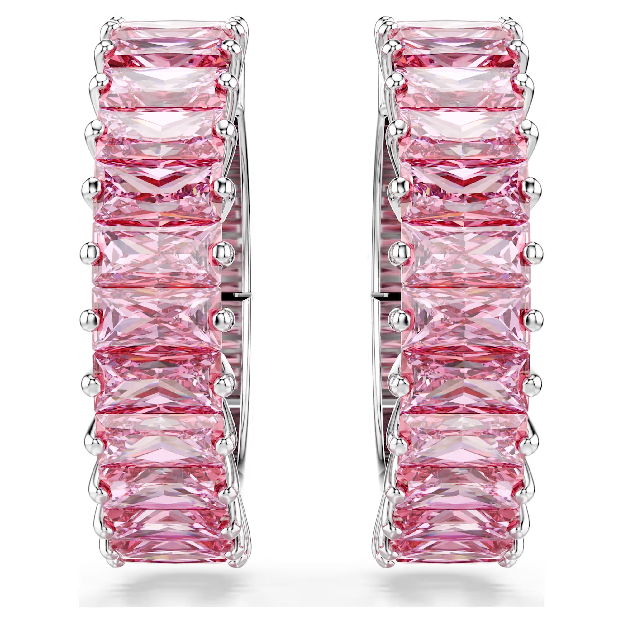 Questo ear cuff grazioso e originale è il modo più semplice per aggiungere un tocco di colore al tuo stile. Realizzato con un’apertura a cerniera, il design placcato rodio presenta Swarovski Zirconia taglio Baguette sul davanti, ciascuna con una tonalità rosa in una montatura orizzontale. Indossalo con altre creazioni Matrix coordinate per accentuare la gioia.