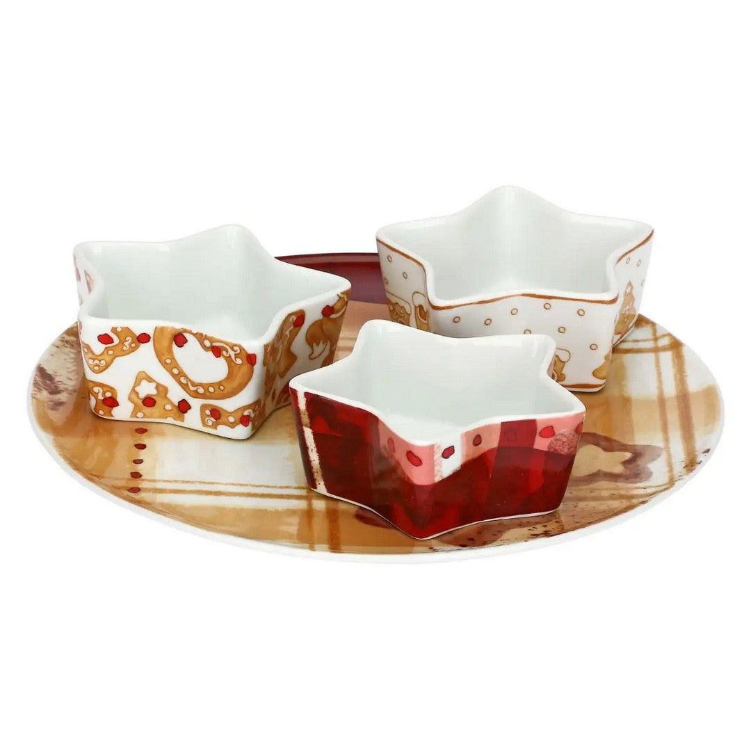 Il piatto grande con 3 ciotole in porcellana della linea Thunland è pensato per condividere i sapori delle feste con stile e calore. Raffinato nei dettagli e perfetto per servire antipasti, dolci o sfizi natalizi, è anche un’idea regalo ideale per chi ama ricevere con eleganza e spirito di convivialità.
