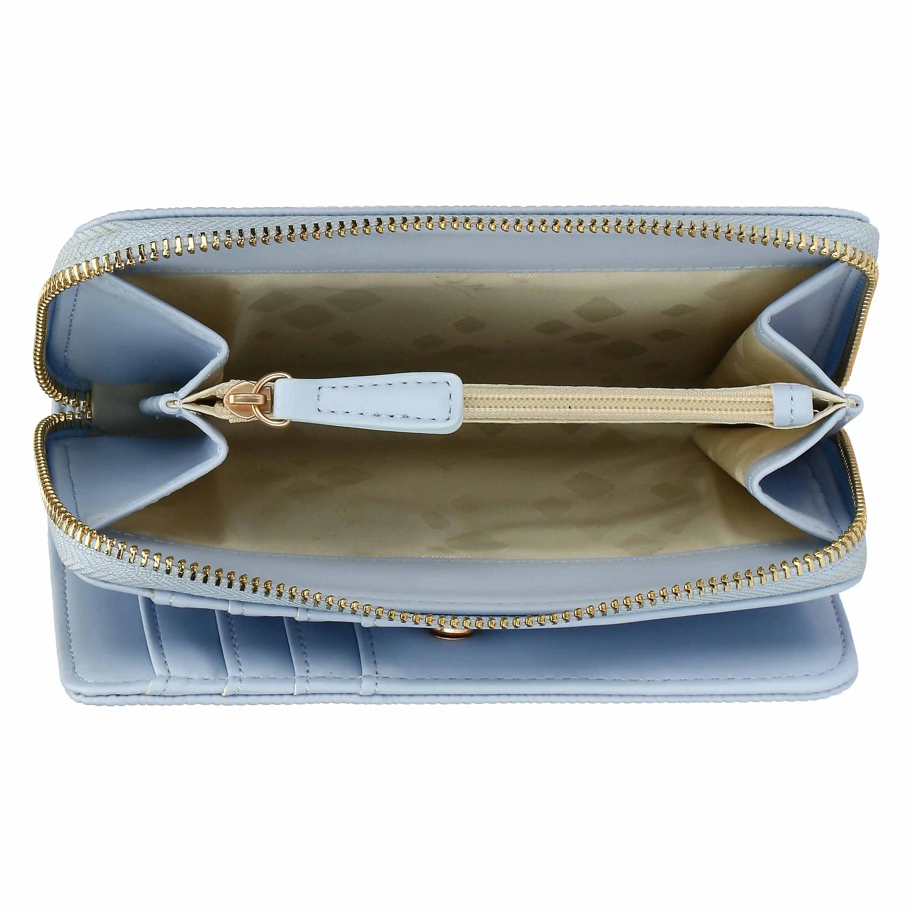 Questo portafoglio da donna in ecopelle azzurro, di dimensioni medie, unisce praticità ed eleganza. Offre ampio spazio per carte, banconote e monete, mantenendo un design compatto e funzionale. Il colore azzurro aggiunge un tocco di freschezza, rendendolo perfetto per chi cerca un accessorio sofisticato e ideale per l'uso quotidiano. Con la sua forma versatile, si adatta facilmente alla tua borsa, combinando ordine e stile in un unico, pratico accessorio.