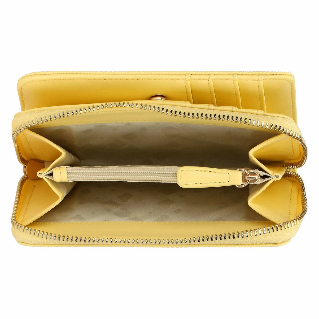 Questo portafoglio da donna in ecopelle giallo, di dimensioni medie, unisce praticità ed eleganza. Offre ampio spazio per carte, banconote e monete, mantenendo un design compatto e funzionale. Il colore giallo aggiunge un tocco di freschezza, rendendolo perfetto per chi cerca un accessorio sofisticato e ideale per l'uso quotidiano. Con la sua forma versatile, si adatta facilmente alla tua borsa, combinando ordine e stile in un unico, pratico accessorio.