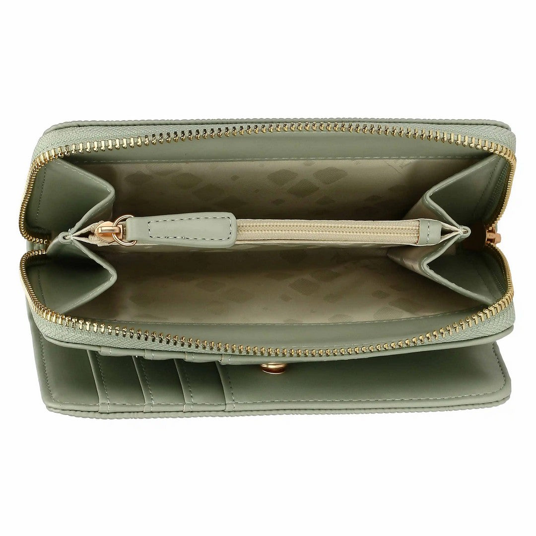Questo portafoglio da donna in ecopelle verde, di dimensioni medie, unisce praticità ed eleganza. Offre ampio spazio per carte, banconote e monete, mantenendo un design compatto e funzionale. Il colore verde aggiunge un tocco di freschezza, rendendolo perfetto per chi cerca un accessorio sofisticato e ideale per l'uso quotidiano. Con la sua forma versatile, si adatta facilmente alla tua borsa, combinando ordine e stile in un unico, pratico accessorio.