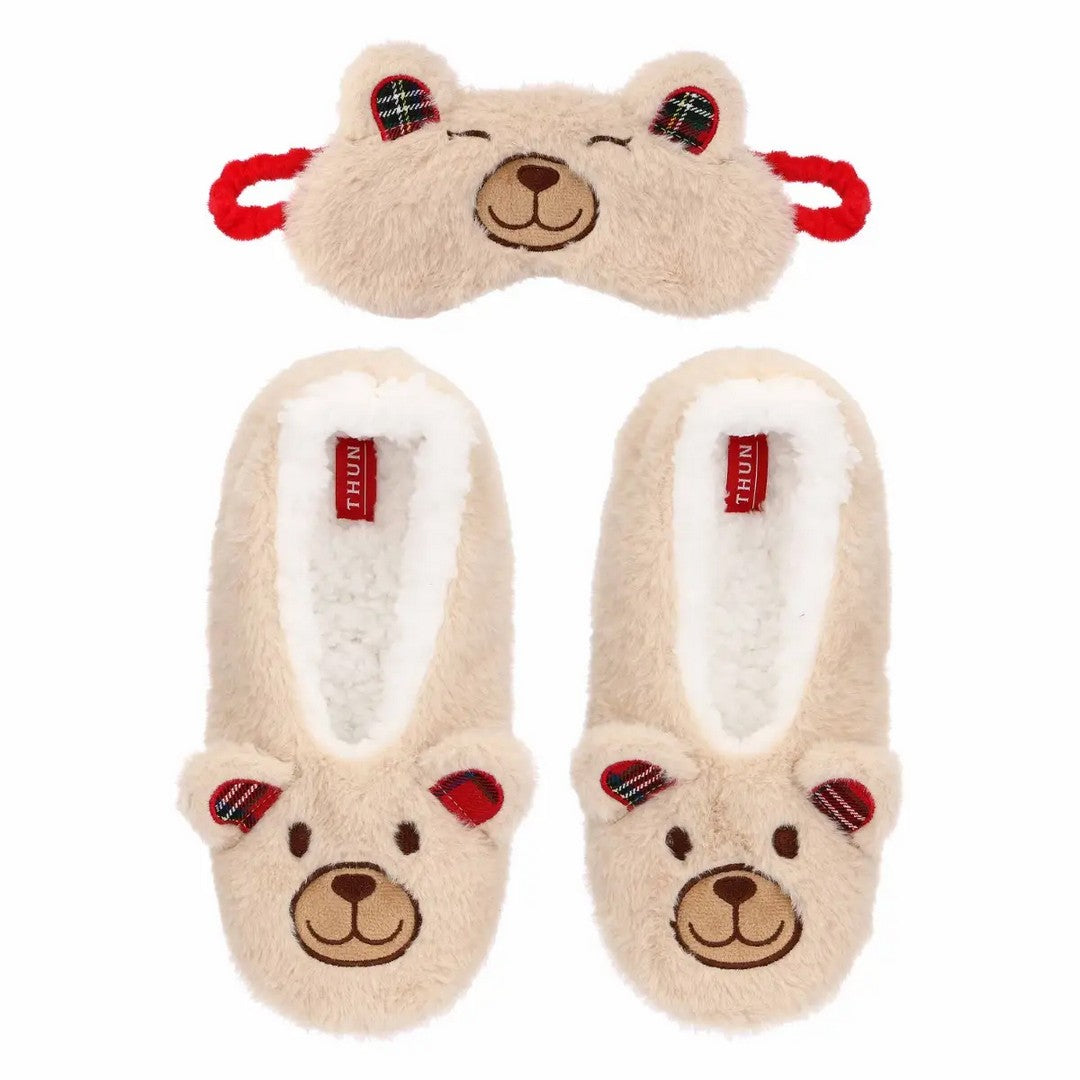 Un duo di comfort e stile per i tuoi momenti di relax: mascherina e ciabatte ballerina firmate THUN morbide e delicate, pensate per coccolarti con dolcezza a casa o in viaggio. Il regalo perfetto per prendersi cura di sé con un tocco di eleganza.