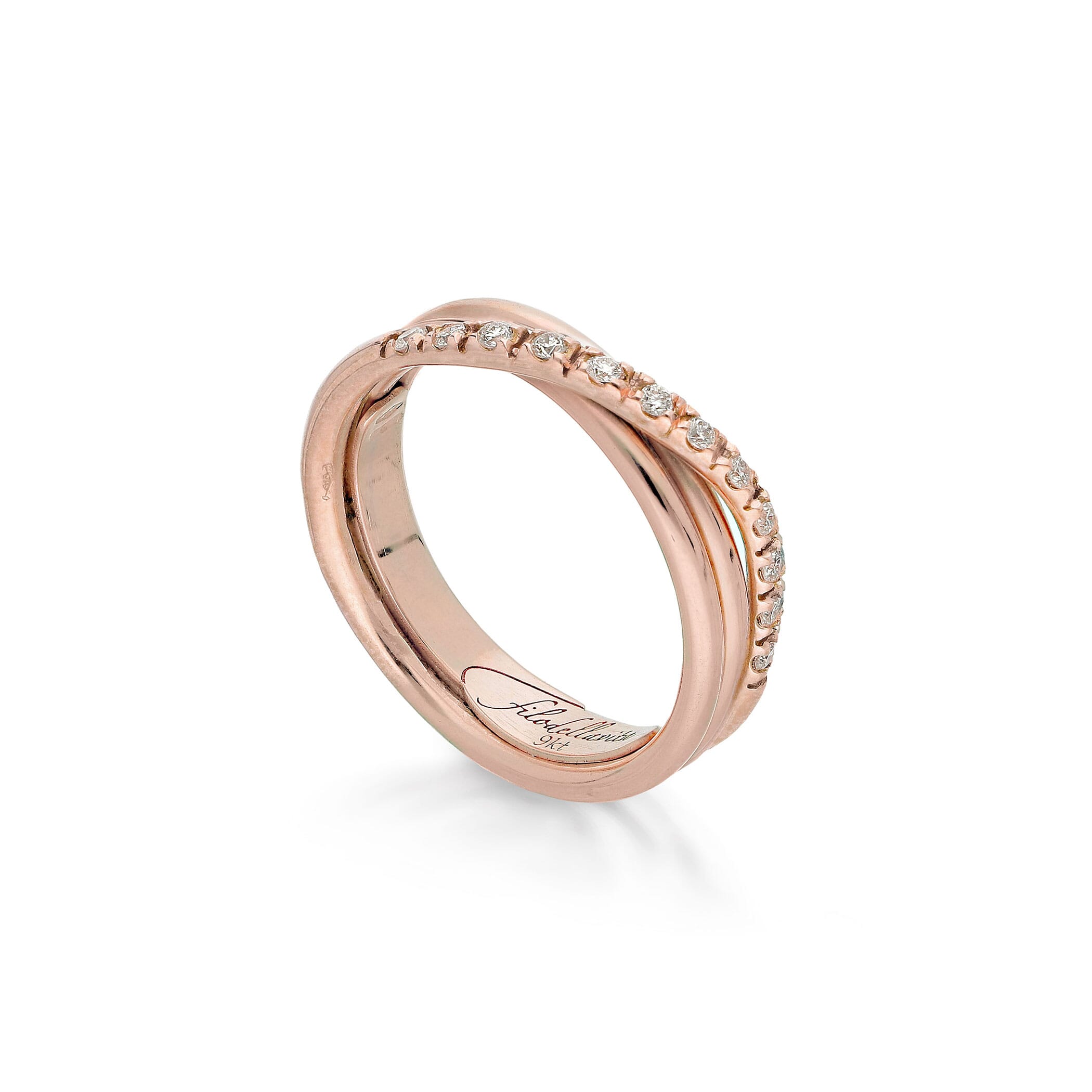 Anello Filodellavita Classic Collection, 3 Fili in Oro Rosa 9kt e 12 Diamanti Bianchi 0.17 ct