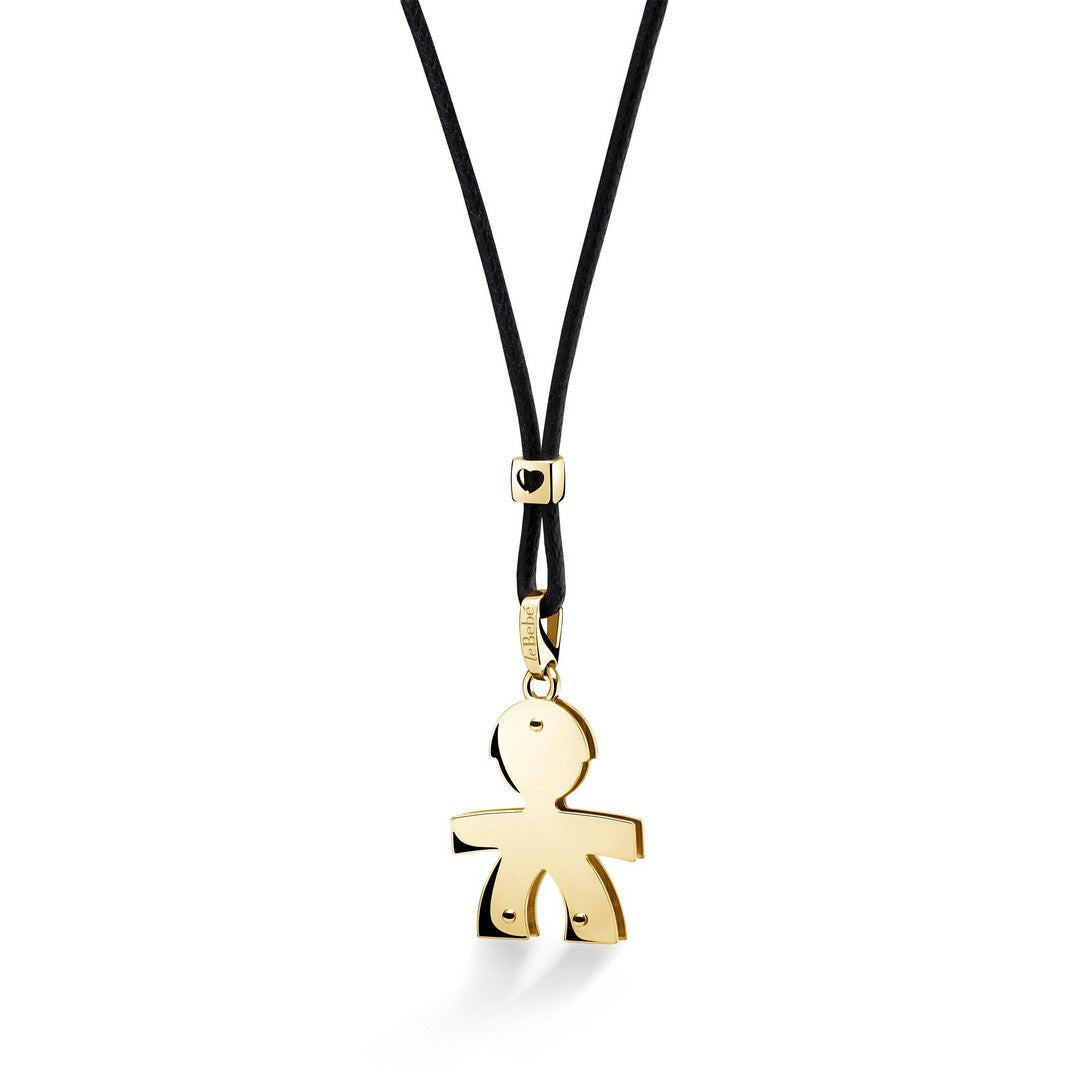 Ciondolo sagoma bimbo in oro giallo 9kt su cordino ecologico nero