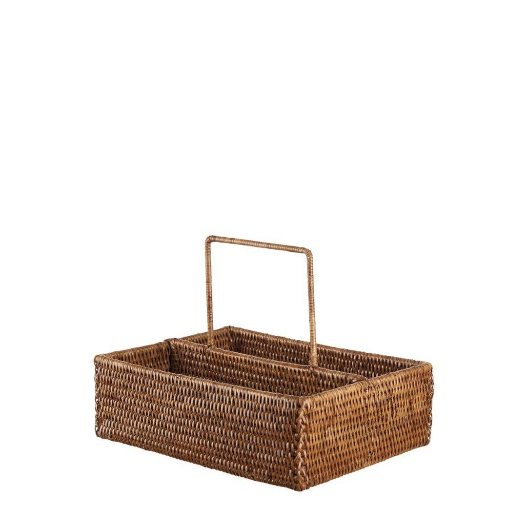Cestino con manico in rattan con struttura del manico in metallo. Elegante e funzionale, arreda con stile la sala da pranzo. Da abbinare agli altri complementi in rattan dell'ispirazione Modern Country per un arredamento in cui i dettagli si fondono in un'armonia perfetta.