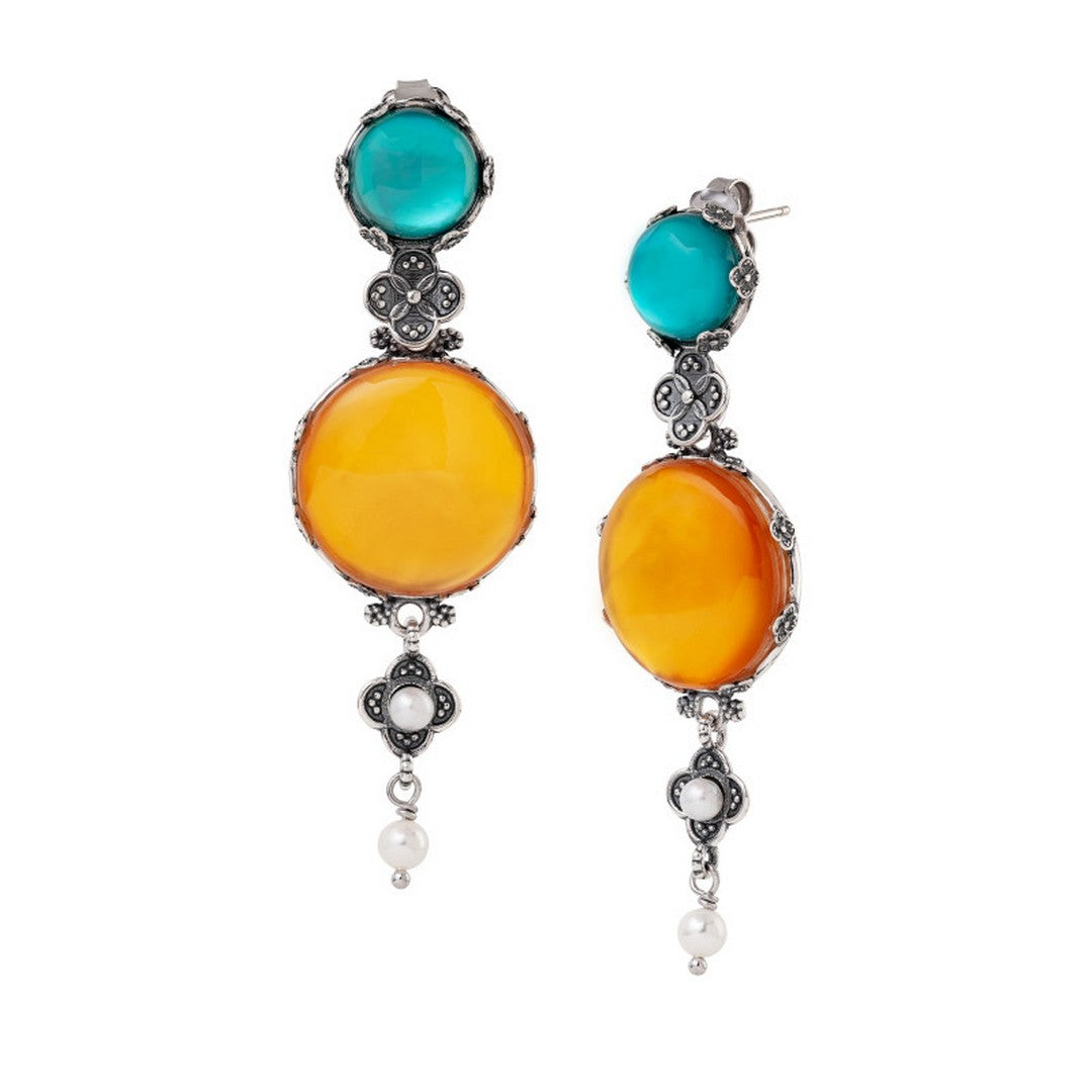 Orecchini in argento 925 e triplette semi preziose taglio cabochon.