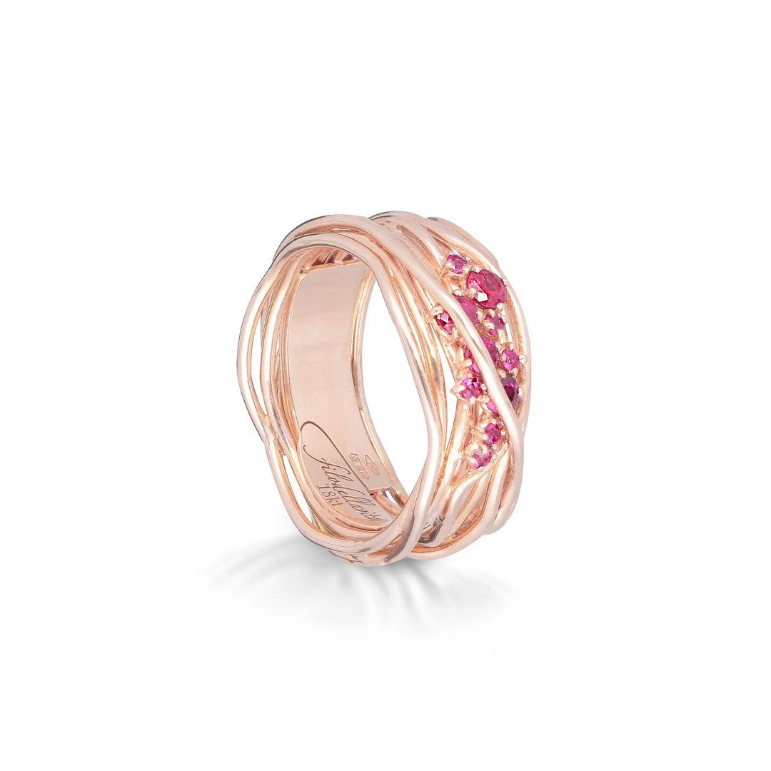 Anello Filodellavita Ten Collection, 10 Fili in Oro Rosa 18kt e 10 Rubini (Tot. 0.40ct)