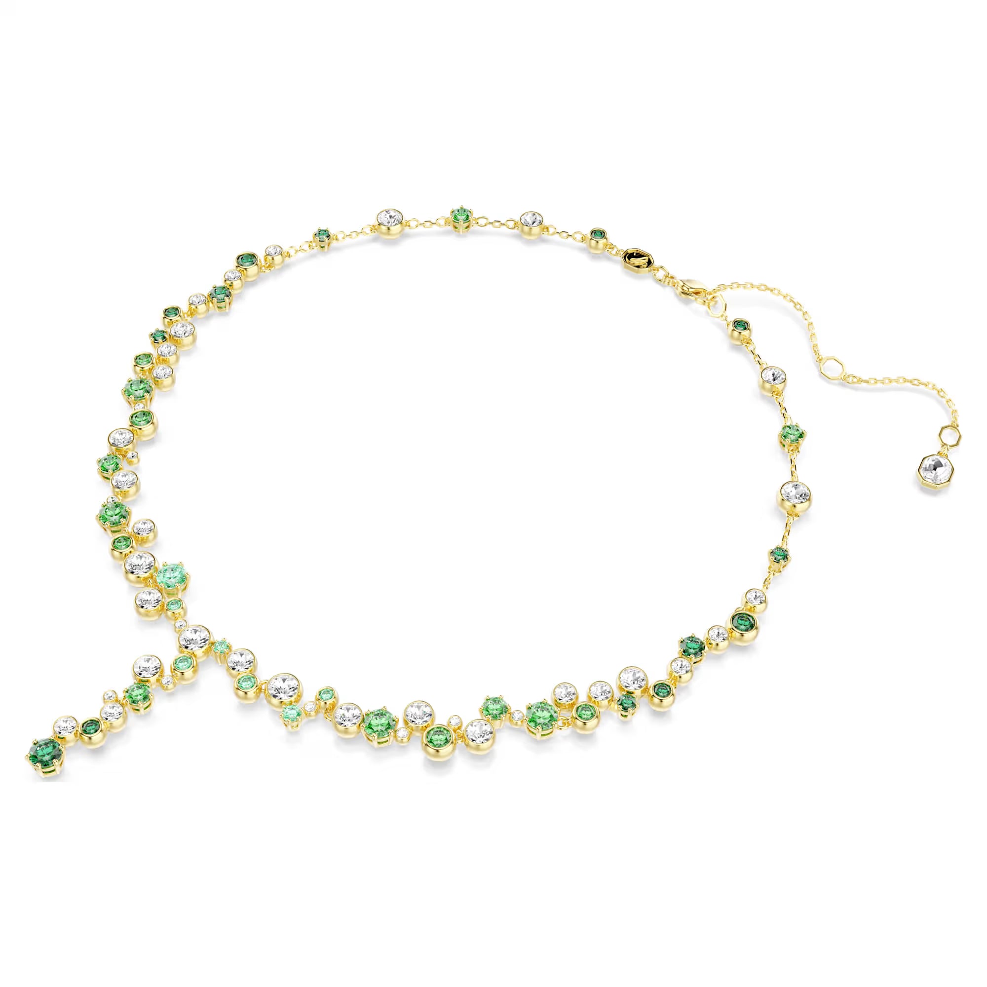 Questa stellare collana della famiglia Constella è tanto complessa quanto attraente. La silhouette a T esibisce una decorazione all around di cristalli e Swarovski Zirconia, con un mix di ipnotiche tonalità verdi e trasparenti che si abbinano perfettamente alla montatura placcata in tonalità oro. Indossala insieme ad altre creazioni Constella per irradiare vitalità e gioia.