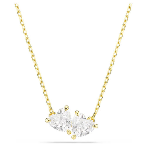 Questa collana Swarovski della famiglia Mesmera offre un design classico con una rivisitazione moderna. Impreziosito da splendide Swarovski Zirconia a forma di doppio cuore, il design è completato dalla placcatura in tonalità oro e dall’eleganza discreta della sua catena. Questa affascinante collana è il perfetto regalo romantico per la persona che ami.