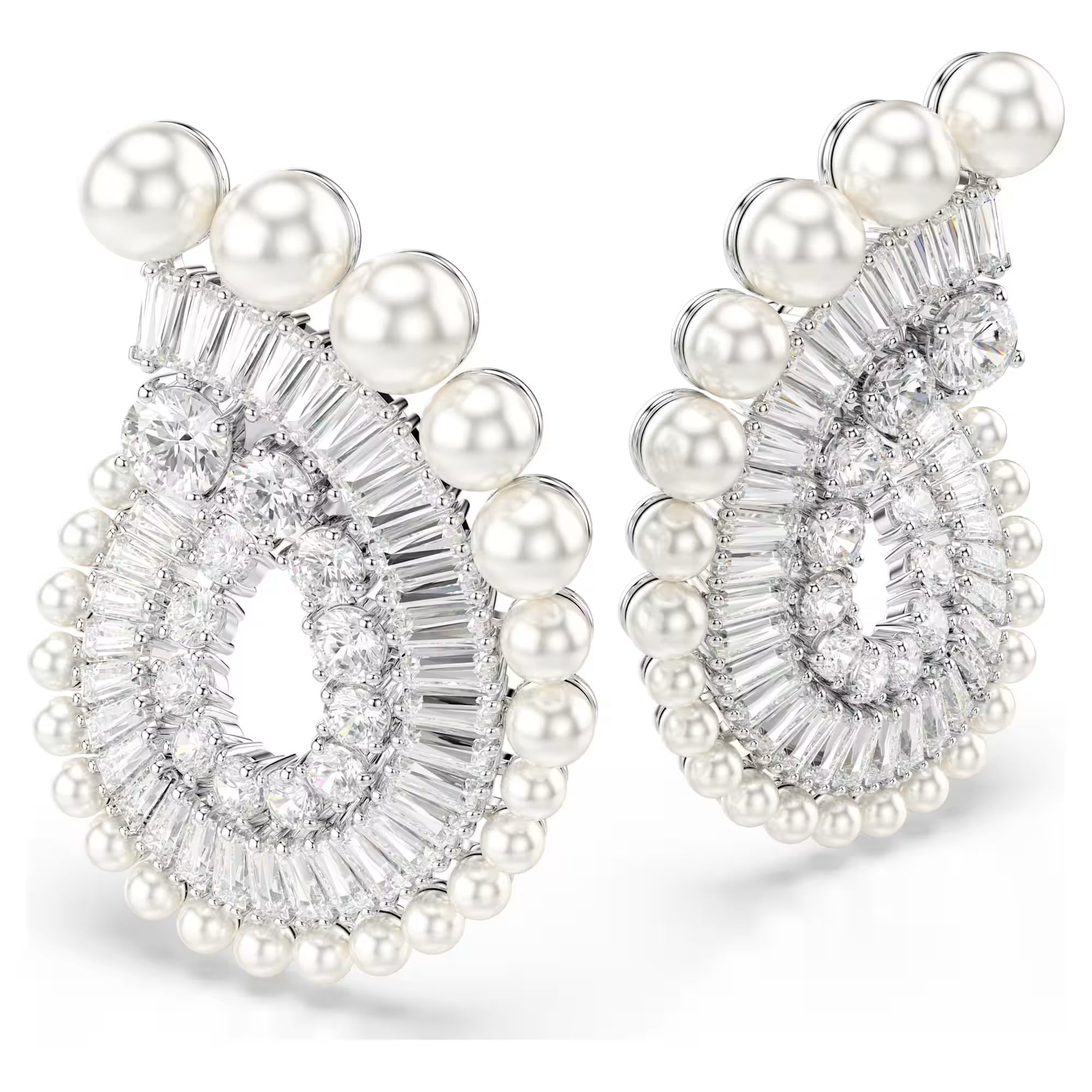 Infusi del savoir-faire di Swarovski, questi straordinari orecchini a buco sono un modo ultramoderno per elevare qualsiasi outfit. Ciascuna creazione placcata rodio presenta una spirale aperta di Swarovski Zirconia taglio Round e Baguette in una gradazione di dimensioni. Sulla sezione esterna, il design è completato da una gradazione di Crystal Pearls Swarovski, che conferiscono un tocco lussuoso e accattivante. Un paio di orecchini luminosi e splendidi, facilmente abbinabili ad altre creazioni della stessa famiglia creativa.