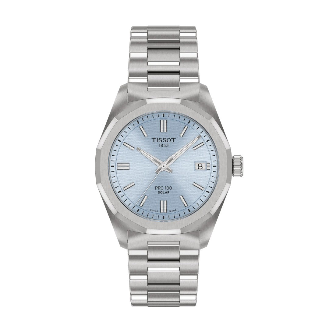Introdotto per la prima volta a metà degli anni 2000, il PRC 100 grazie al suo design straordinario si è ritagliato da subito un posto nella collezione Tissot. Oggi ritorna con un movimento pionieristico Lightmaster Solar Quartz, che sfrutta l'energia fotovoltaica per alimentare ogni secondo. Con la sua cassa in acciaio da 34 mm e la lunetta dodecagonale, questo modello emana sicurezza. Sotto l'elegante vetro zaffiro si nasconde un movimento al quarzo a energia solare, progettato per ricaricarsi senza fatica sia con la luce naturale che con quella artificiale. L'indicatore di fine energia garantisce prestazioni ottimali, mentre la compatibilità con il cinturino da 18 mm consente di personalizzare il proprio stile, sia con la classica pelle che con le moderne opzioni.